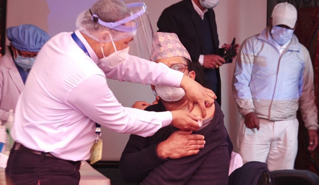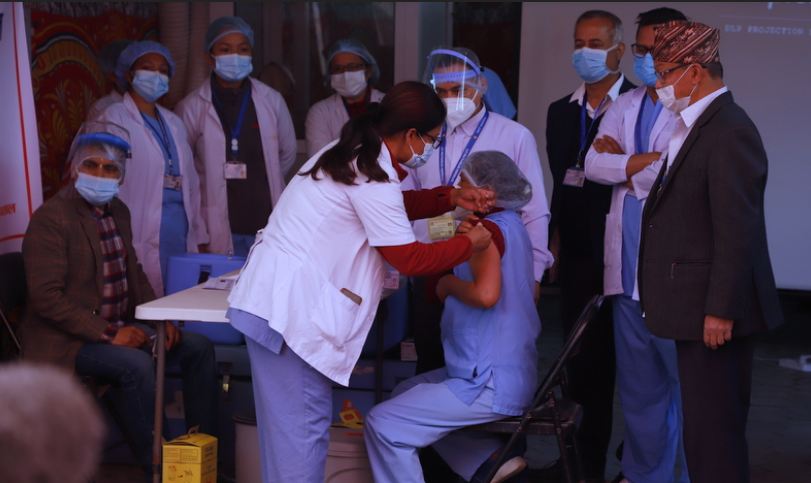 काठमाडौं:  नेपालमा कोरोना भाइरस विरुद्धको खोप लगाउन शुरु गरिएको छ । आज (बुधबार)देखि कोभिड–१९ संक्रमणको रोकथाम तथा उपचारमा पहिलो घेरामा रहेर काम गर्ने स्वास्थ्यकर्मी, सुरक्षाकर्मी, सफाइकर्मीहरुका लागि खोप लगाउन शुरु गरिएको हो ।