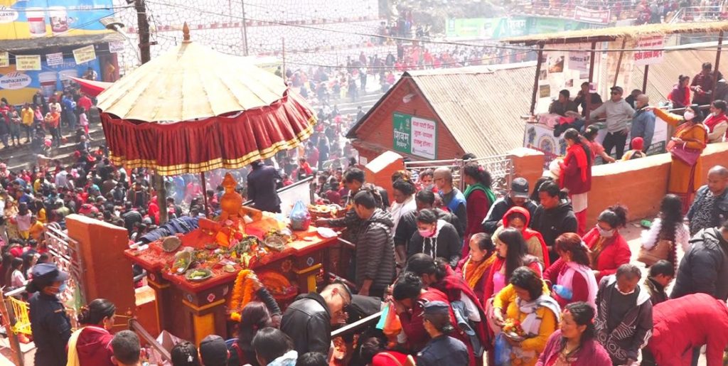 विधिपूर्वक एक महिने ब्रत गरेकाले माघ शुक्ल पूर्णिमाका दिन आज १०८ जनै, १०८ सुपारी, १०८ पान, १०८ फूल, १०८ रोटी, १०८ अक्षता विभिन्न थरीका फलफूल, धूप, बत्ती, नैवेद्य, श्रीखण्ड, रक्तचन्दन, सिन्दूर, वस्त्र, भेटी चढाइ ब्रतको कामना पूर्ण होस् भनी भगवतीलाई अघ्र्य दिइन्छ ।