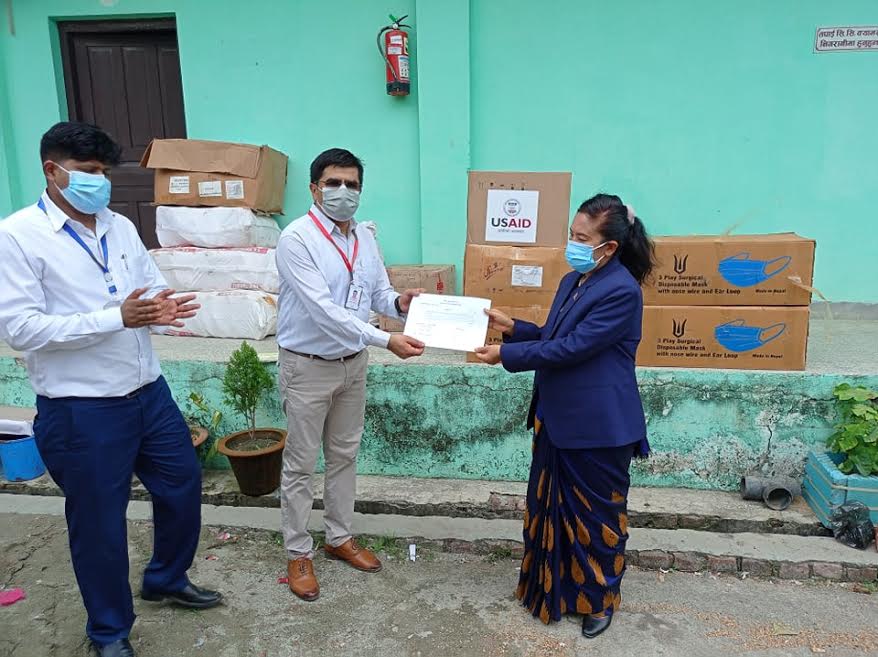स्वास्थ्य सामाग्री हस्तान्तरण कार्यक्रममा युएनडिपीका धनबहादुर चन्द, युएसएआडीको सुआहारा परियोजनाका प्रदेश संयोजक सुभाष गौतम लगायतको सहभागिता रहेको थियो ।