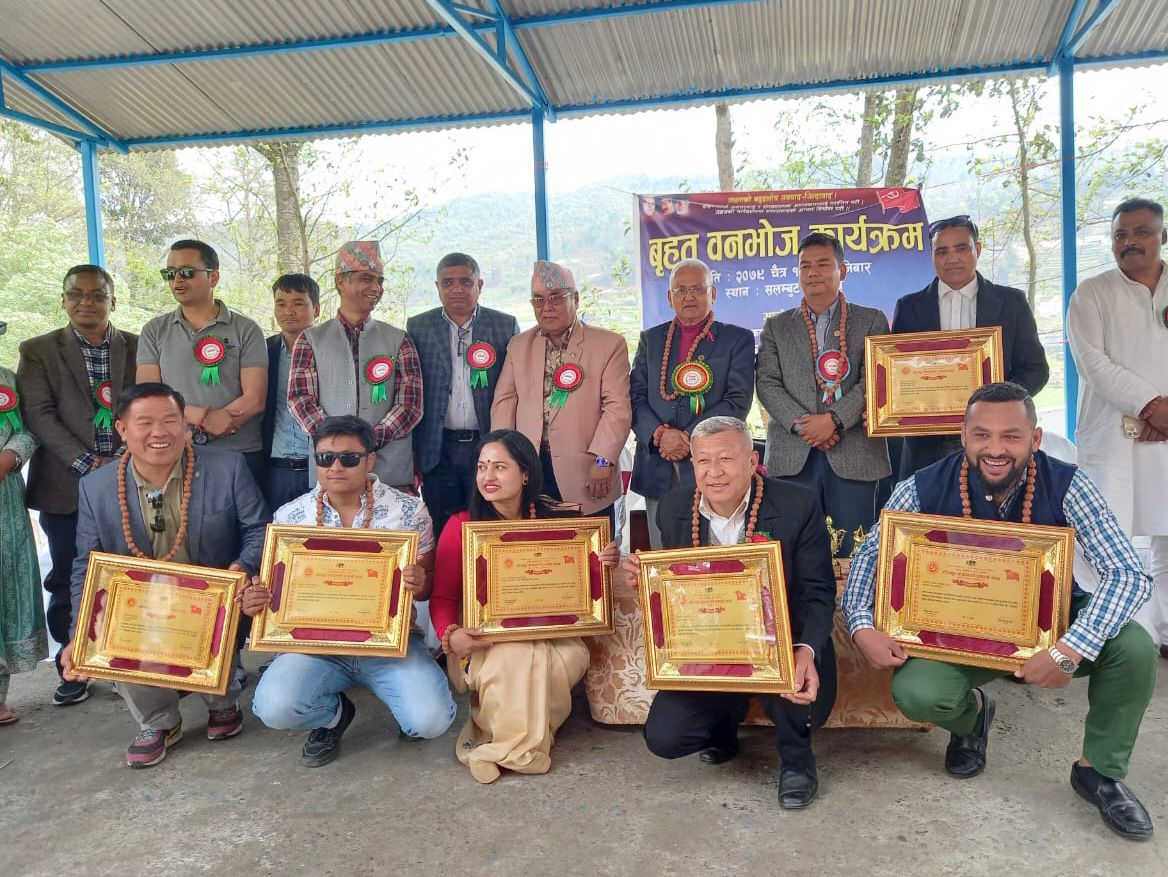 काठमाडौ : नेकपा एमाले भोजपुर-काठमाडौ सम्पर्क मञ्चले बनभोज तथा सम्मान कार्यक्रम साँखुको सलम्बुटारमा गरेको छ । मञ्चका अध्यक्ष फुर्बा तेन्जिङ शेर्पाको अध्यक्षतामा सम्पन्न सो कार्यक्रममा प्रमुख अतिथि नेपाल सरकारका पूर्व परराष्ट्र मन्त्री महेन्द्र बहादुर पाण्डेले ६ जनालाई सम्मान गरेका थिए । सम्पर्क मञ्चका गतिविधिहरुमा अमूल्य योगदान गर्ने देवी घिमिरे, सत्य राज राई, शशिकला रोकाहा, गोम्बा शेर्पा, उत्तम कटुवाल र सुसन श्रेष्ठलाई सम्मान गरेको अध्यक्ष शेर्पाले बताए । उक्त वनभोज कार्यक्रममा संविधानसभा सदस्य कृपासुर शेर्पा, कोशी प्रदेश सचिवालय सदस्य राजकुमार दंगाल, सम्पर्क समन्वय कमिटीका सदस्य महेश चन्द्र गौतम, कोशी सम्पर्क कमिटीका सचिव नवराज घिमिरे समेतको उपस्थितिमा विभिन्न मनोरंजक खेल खेलाउनुका साथै नाचगान पनि गरिएको थियो ।